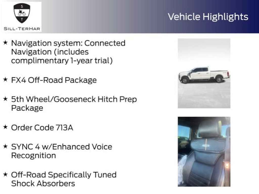 Powered by the legendary 6.7L High Output Power Stroke V8 Diesel engine and paired with a 10-Speed Automatic transmission, this F-350SD delivers unparalleled towing and hauling capabilities. The FX4 Off-Road Package ensures you can conquer even the most challenging terrain, while the 5th Wheel/Gooseneck Hitch Prep Package provides the ultimate in versatility for your towing needs.